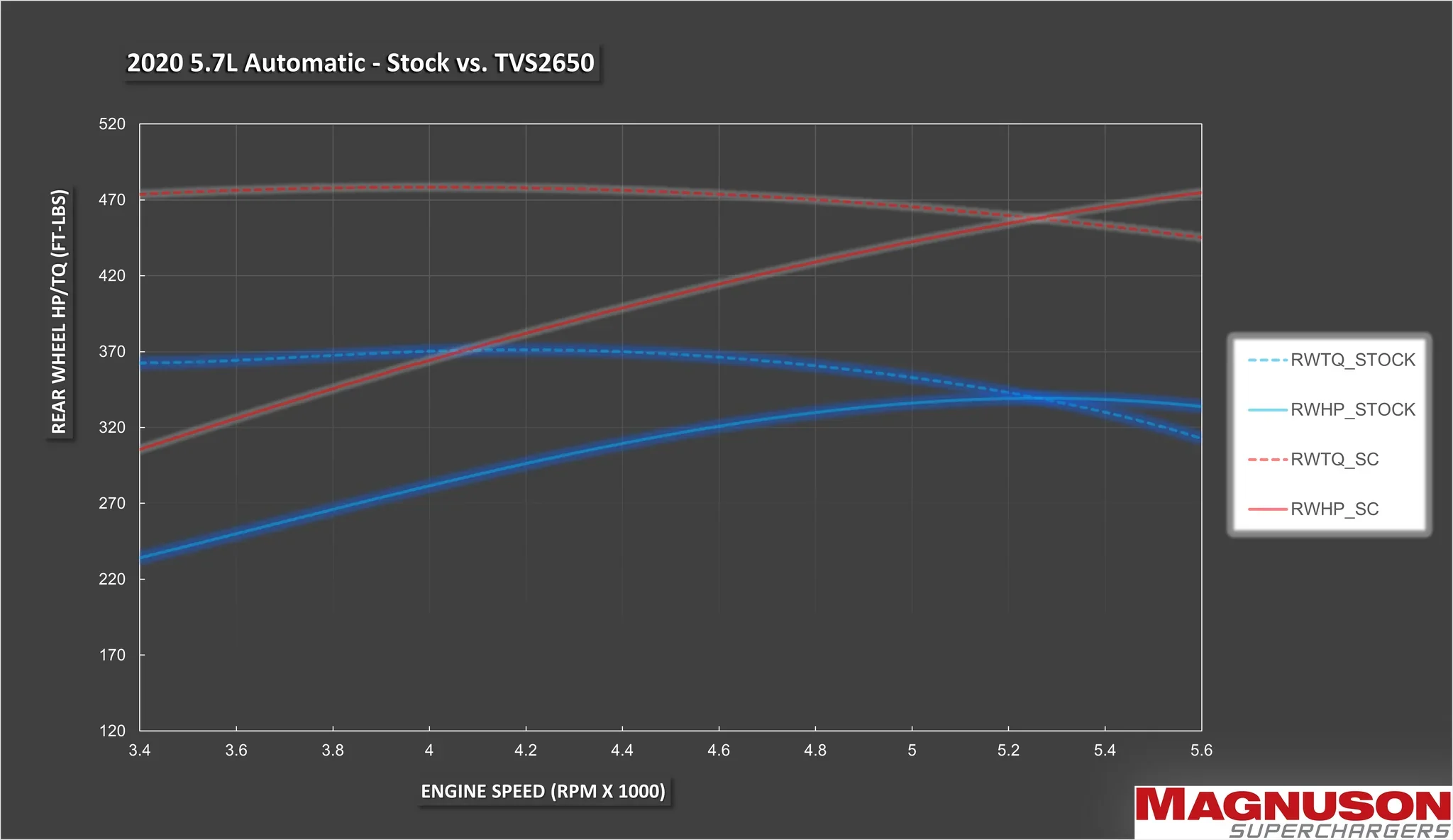 Take your Durango or Grand Cherokee to the next level with Magnuson’s TVS2650 Magnum Supercharger System! Built off our premium Magnum Performance Line, this system will give your engine an incredible 40% boost in horsepower resulting in 524 hp and 529 ft-lbs at the crank on 5.7L applications, and 26% boost in horsepower resulting in 613 hp and 543 ft-lbs at the crank on 6.4L applications! The two massive charge air coolers provide maximum cooling capability for reliable, repeatable performance all day long on the street or track!
